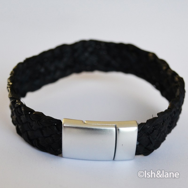 Superbe Bracelet en Raphia tissé, double tige, avec fermoir Magnétique.18 à 19 cm.