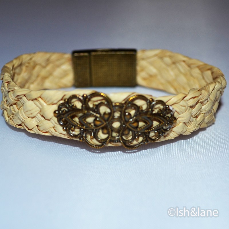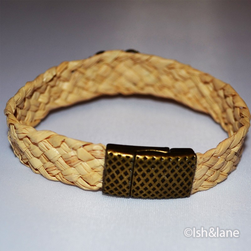 Superbe Bracelet en Raphia tissé avec fermoir Magnétique.18 à 19 cm.
